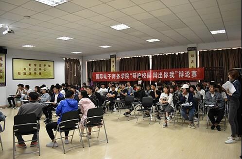 为锻炼大学生思维与表达能力,增强团队合作意识,培养同学之间的友谊和默契,由国际电子商务学院新媒体中心和学习部举办的以“辩响校园,辩出你我”为主题的辩论赛于2018年5月22日晚自习期间精彩开辩。