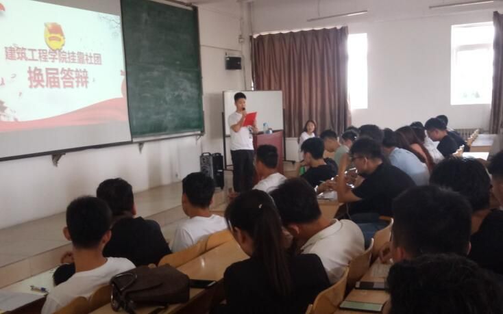 6月13日下午14:30,建筑工程学院挂靠社团换届答辩活动在二楼东配多媒体教室5举行,出席本次活动的有团总支学生会各部门部长,各社团的现任社长等。