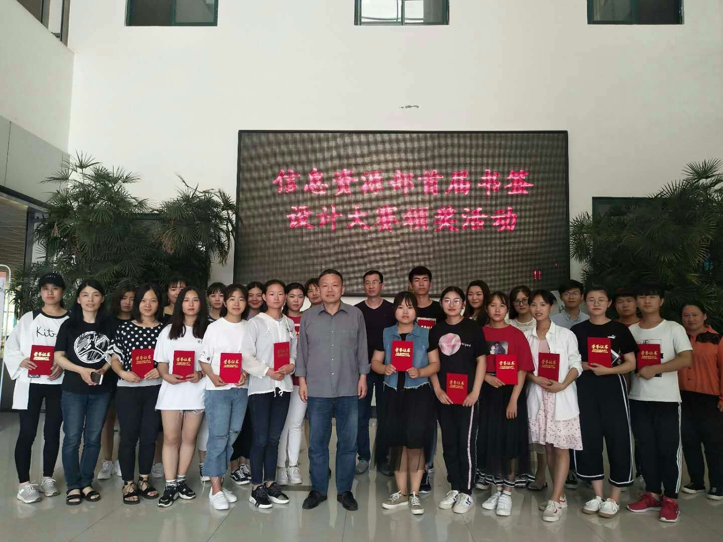 吕老师代表信息资源部向大家发出诚挚的邀请,邀请大家经常来学习,来阅读,充分利用威尼斯官网的图书资源。最后所有获奖同学和领导老师们在一楼大厅合影留念。本次书签设计大赛是信息资源部读书月系列活动之一,激发了学生的读书热情,让学生自觉养成爱护书、勤读书、读好书的好习惯。