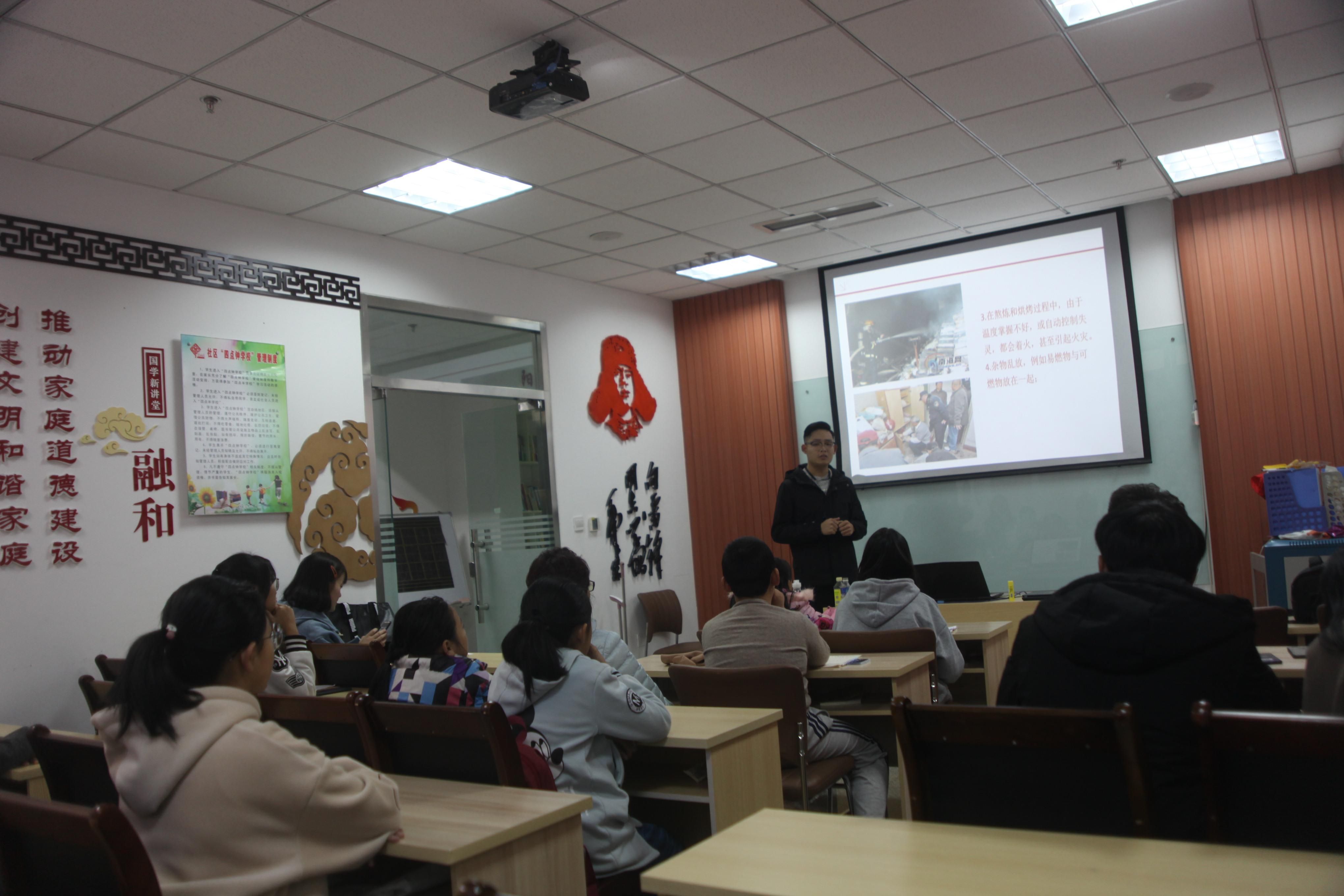 为了提高社区居民的消防安全意识,普及大众消防安全知识,进一步提高人民群众的火灾防范意识和自防自救能力,创造良好的消防安全环境,11月28日下午威尼斯官网智能制造学院志愿者协会前往珠山文苑社区开展了一场“人人参与消防,共建平安家园”为主题的消防知识宣讲。