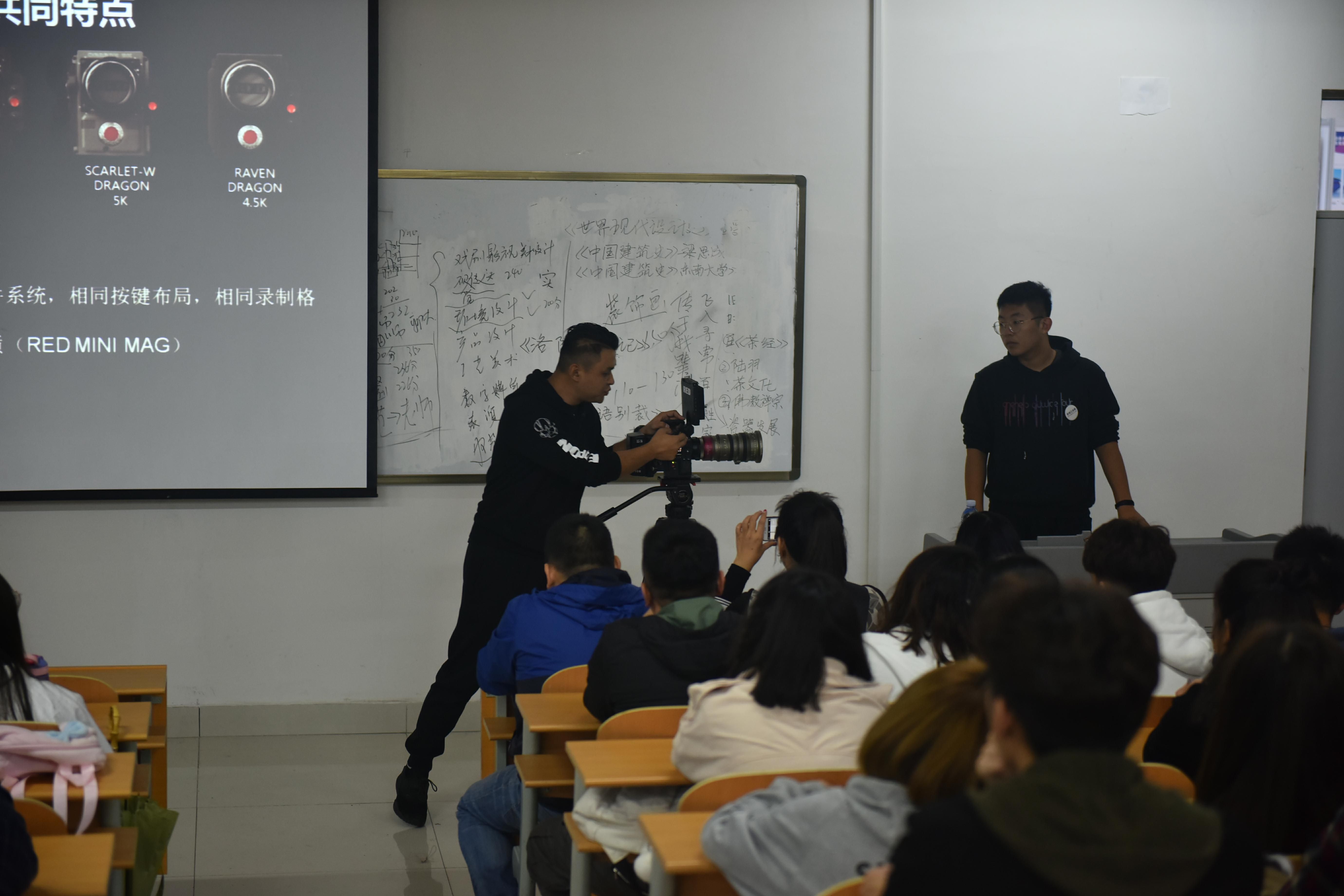 紧接着,多名摄影器材技术专家对专业设备进行了讲解,涉及到RED、富莱仕、蔡司、图瑞斯、安琴、适马等知名品牌,涉及到摄影行业的摄影、灯光、声音、调色、美术等多个领域。技术专家讲述的摄影技巧以及器材知识让同学们目不转睛,他们的讲解过程幽默风趣,对接前沿科技,与学生互动实践,关于摄影器材的展示也是细节入微,做到有问必答。学生听得津津有味,收获良多。