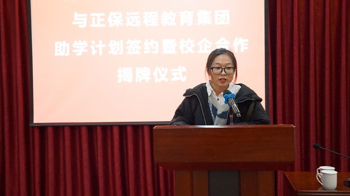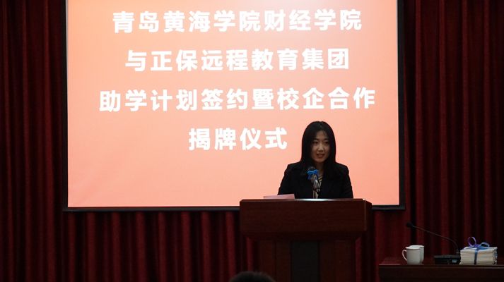 正保远程教育集团校园业务部总监申燕瑞在发言中表示,此次合作的非常有意义,前景美好。表示能够与黄海学院开展此次助学计划十分荣幸,通过本次校企合作,一方面是肯定了集团当前的工作和能力,另一方面也对企业工作提出了更高要求。校企合作是联系企业和学校的纽带,能够更好得将企业文化融入课堂,学生们能够对所学的理论知识有更好的领会和实践。