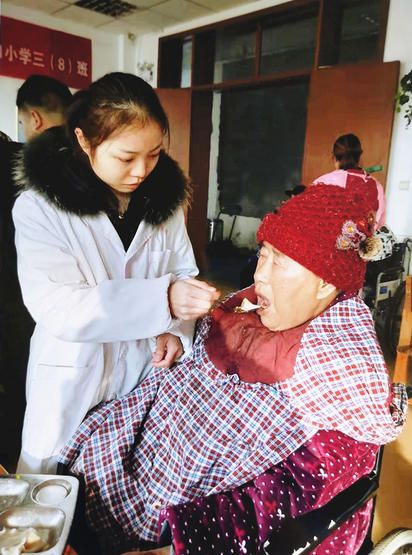 护理专业的鲍晴晴也将自己的专业知识用到了对老人们的照顾上,她利用自己的专业技能为老人打针、量血压、测血糖......鲍晴晴说,等毕业以后她想到医院里当护士,照顾更多需要照顾的人。