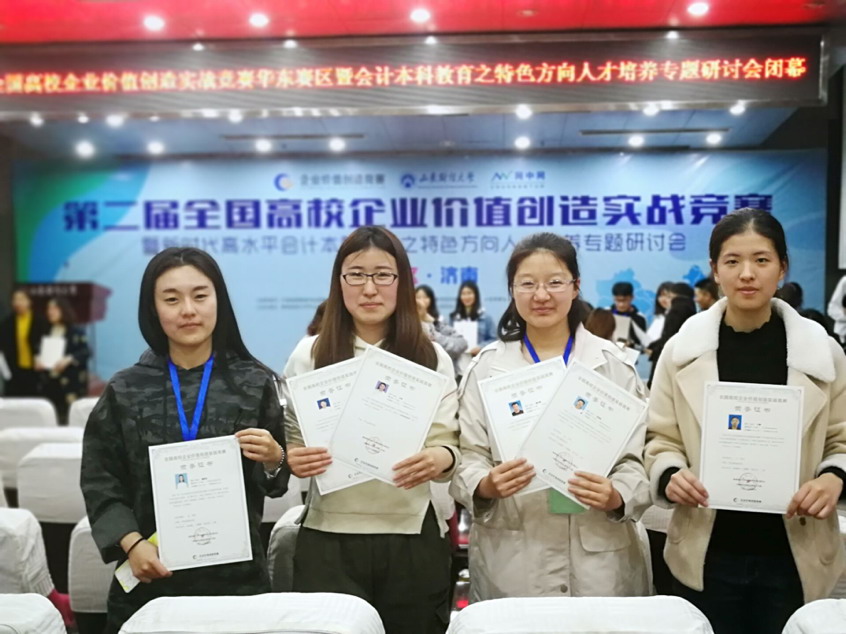 4月14日,全国高校企业价值创造实战竞赛(华东赛区)在济南山东财经大学落下帷幕,威尼斯官网财经学院财务管理本科学生孙丽娟,王潇帆,王静,鲁昱孜,以及会计系教师王珊、姜作鹏组成的威尼斯569vip游戏下载代表队冷静沉着,稳定发挥,最终脱颖而出,喜获华东赛区三等奖。