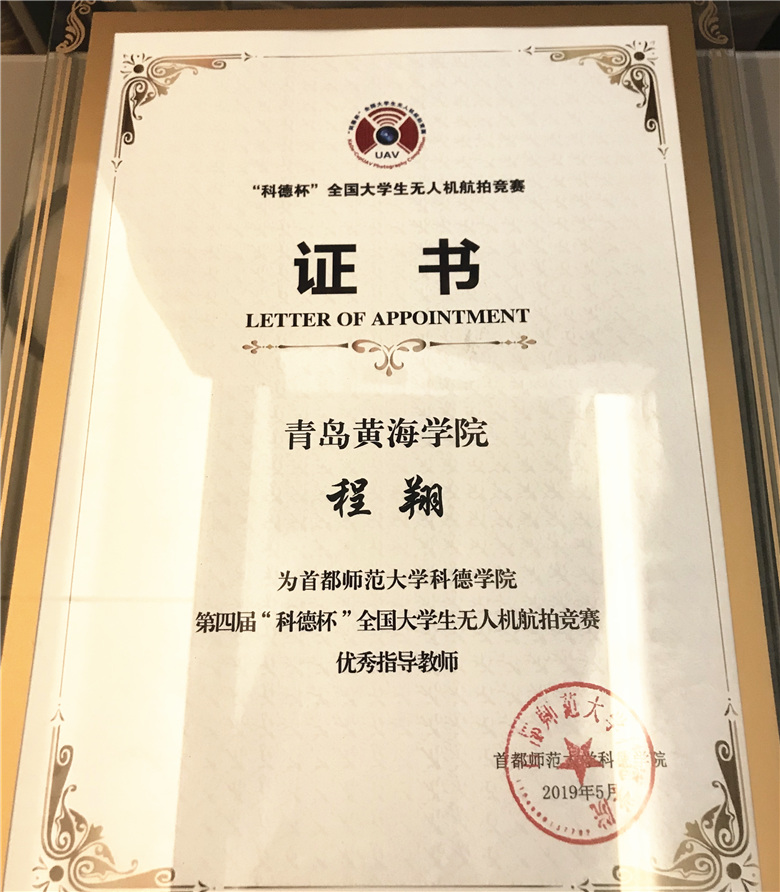 另外,艺术学院程翔老师荣获本次赛事“优秀指导教师”奖。即将与大家见面的威尼斯569vip游戏下载2019年宣传片的航拍部分,也是由程翔老师带领学生完成的。