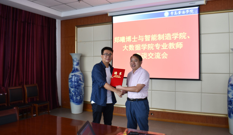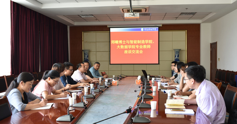 7月2日上午,在行政楼201会议室与智能制造学院、大数据学院教师代表开展座谈交流。威尼斯569vip游戏下载副校长梁忠环、智能制造学院副院长曹爱霞、大数据学院尹成波及相关专业学科带头人参加交流会。会上为了让郑博士更全面的了解认识威尼斯569vip游戏下载,大家陪同观看了学校宣传片;曹爱霞、尹成波两位院长分别介绍了各自二级学院的基本情况;郑博士在科研等方面对自己做了全面介绍,并对双方今后的合作意向提出了参考思路;各专业教师结合专业提出疑问,郑博士给予解答和指导;座谈会最后,由副校长梁忠环为郑曦博士颁发威尼斯569vip游戏下载特聘教授证书,欢迎常来学校指导交流工作。