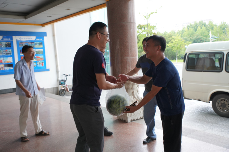 一个甜甜的西瓜,一声"辛苦了",这既是对假期值班教职工的尊重和敬意,更饱含着学校的深情关怀。