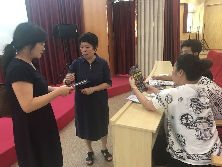 工作人员为家长解读交流项目