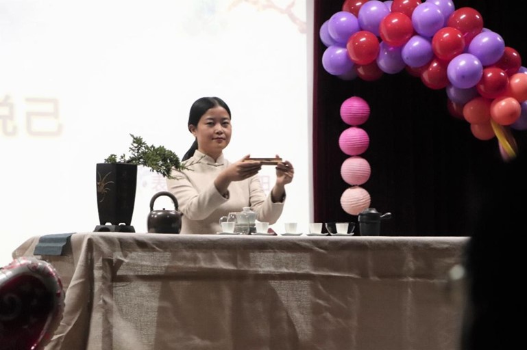 ,其中《盖碗茶艺》、相声《说茶》令观众拍案叫绝;瑜伽表演《彩旗飘飘》中,当两种相近的古老的东方文化相互融合,竟有异曲同工之妙。