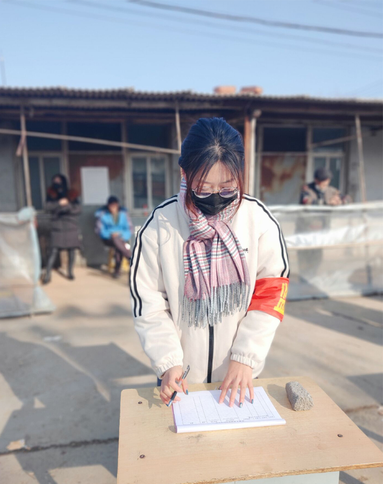 社区全面开展疫情防控工作,高偌楠同学自愿报名参加,成为社区一名疫情防控监督员,每天在社区主路口对进出社区的人员和车辆进行防控检查,测量体温、登记详细信息。同时利用电视,网络等多种渠道,搜集官方发布的最新疫情防控信息并撰写成广播稿,通过社区广播进行宣传,让社区居民及时了解国家疫情防控的最新进展以及个人防控知识。她说:“小时候作文里的那个2020年真的很美,可是现实虽然残酷,但我希望多年以后回望2020,我会这样对我自说,那一年虽然很糟糕,发生了许多的事情,我们的亲人被病痛折磨着,我们的偶像归于天堂,我们感到伤心难过,但是我们团结一致,共抗疫情,最后终于迎来了胜利的好消息。希望今年武汉大学的樱花要比往年更加绚烂。那时对于我们来说2020年不是糟糕的一年,而是意义非凡的一年。”