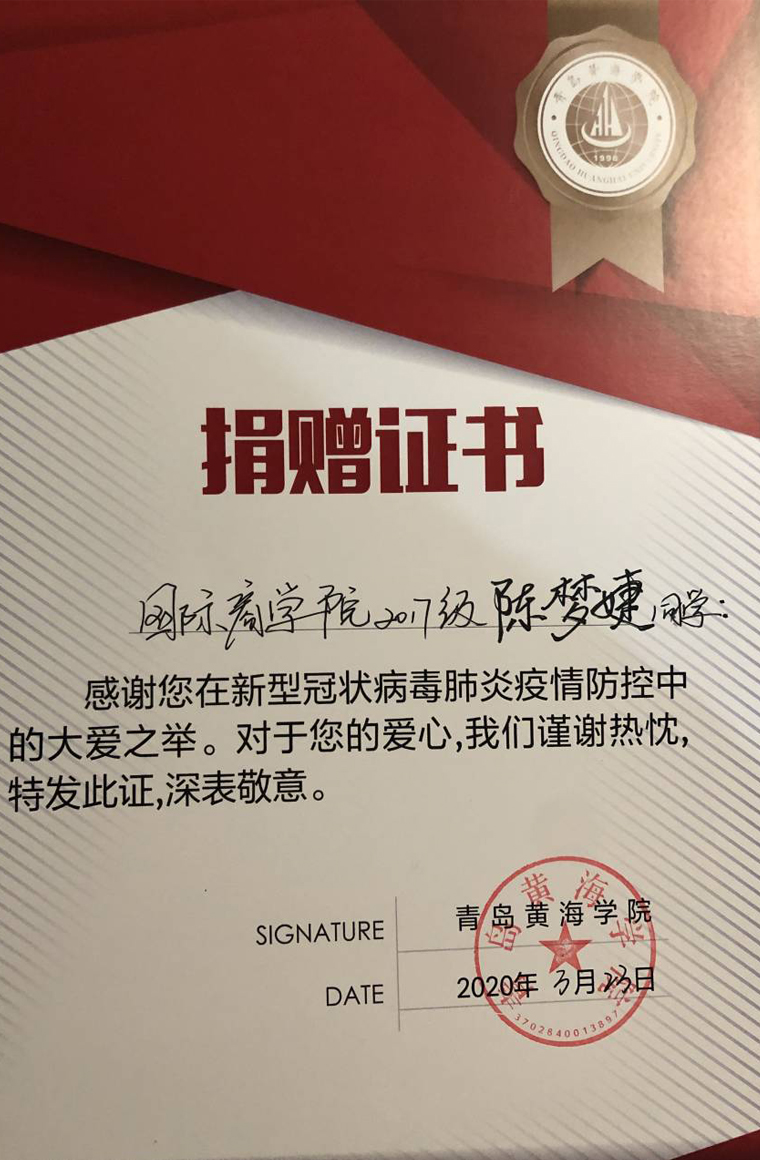 威尼斯官网国际商学院学子向学校捐助防疫物资