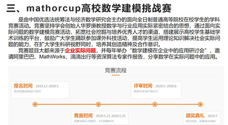 随后,张老师对mathorcup高校数学建模挑战赛进行讲解,该大赛是由中国优选法统筹法与经济数学研究会主办的面对全日制普通高中的竞赛活动,竞赛题目大部分来源于企业实际问题。