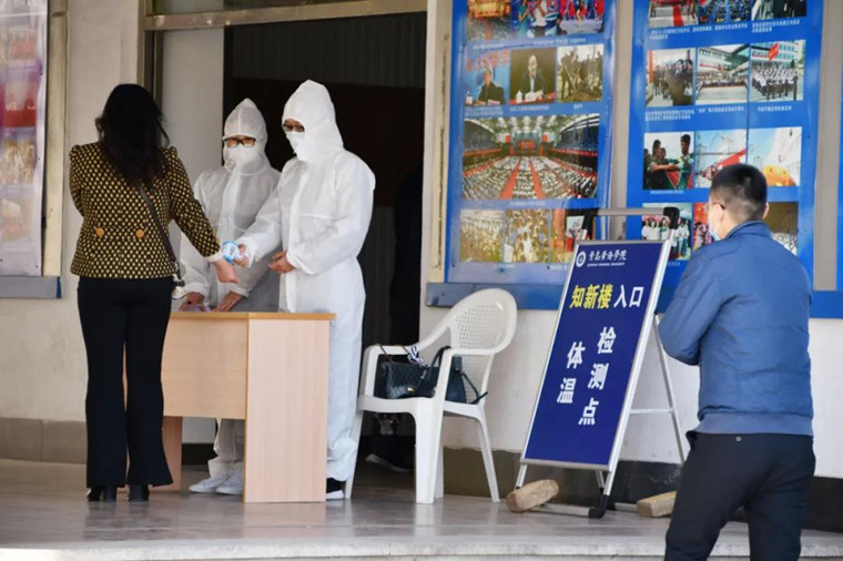 学校为了保障学生返校组织工作,购进热感体温检测设备,并在校门口设有临时观察点。发现体温异常的,立刻由工作人员带到临时观察点。