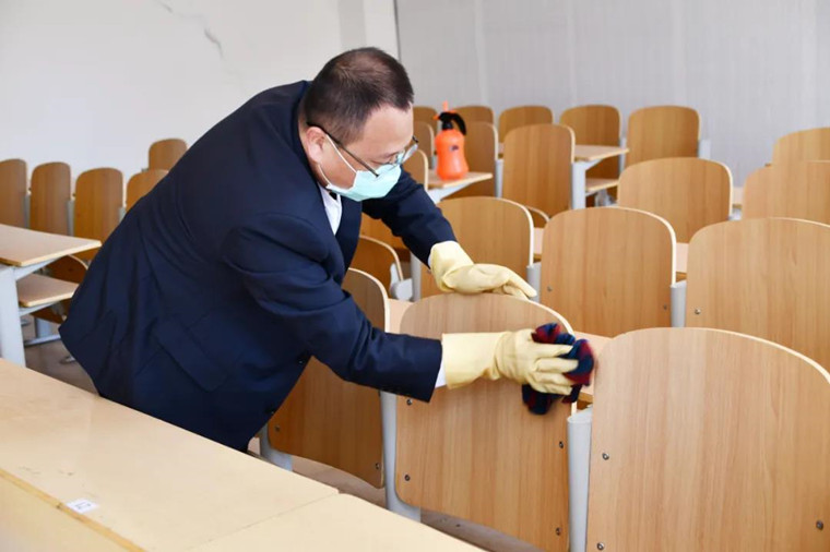 按照《威尼斯569vip游戏下载清洁消毒制度》要求,每天对教室教室等人员密集区每天消毒不少于2次。提醒学生离开教室清空课桌,保持教室清洁。消毒前关闭门窗,带好橡胶手套。消毒时先对桌面采用擦拭的方式进行消毒,再用普通喷雾器喷洒消毒液的处理方式对地面由里向外消毒。最后用擦拭的方式对门及门把手等表面消毒。