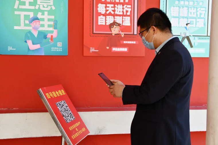 进入宿舍楼前,使用完美校园扫描功能,扫描门口处的二维码进行登记。