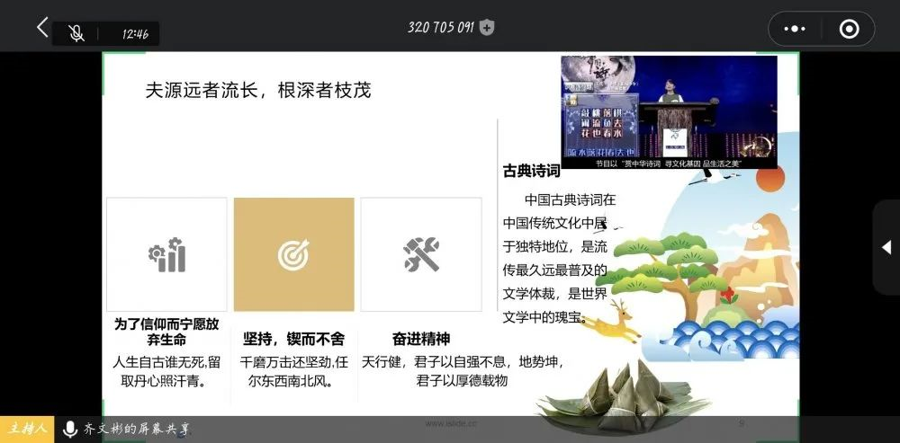 为进一步传承中华文化,展现语言魅力,抒发爱国主义情怀,切实加强我院文化建设,6月18日晚,我院通过腾讯会议面向全体辅导员开展了以“坚定文化自信,传承中华优秀传统文化”为主题的班会观摩活动,此次班会课由齐文彬老师主讲。