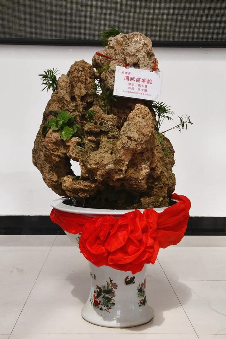 谈起捐赠这座景观石的用意,陈冬慧说:“我特别感谢学校对我的培养,感谢学校为我提供了这么广阔的平台。我选择这座上水石,是因为水代表生命之源,水利万物而不争,石代表坚毅,代表坚韧不拔的品质。流动的水,能在各种阻碍下穿梭,坚韧的石,坚强挺拔独具一格。我希望以此来勉励学弟学妹,既有水的灵活和纯净,又有石的厚重与坚毅,在人生的道路上奋勇向前。”