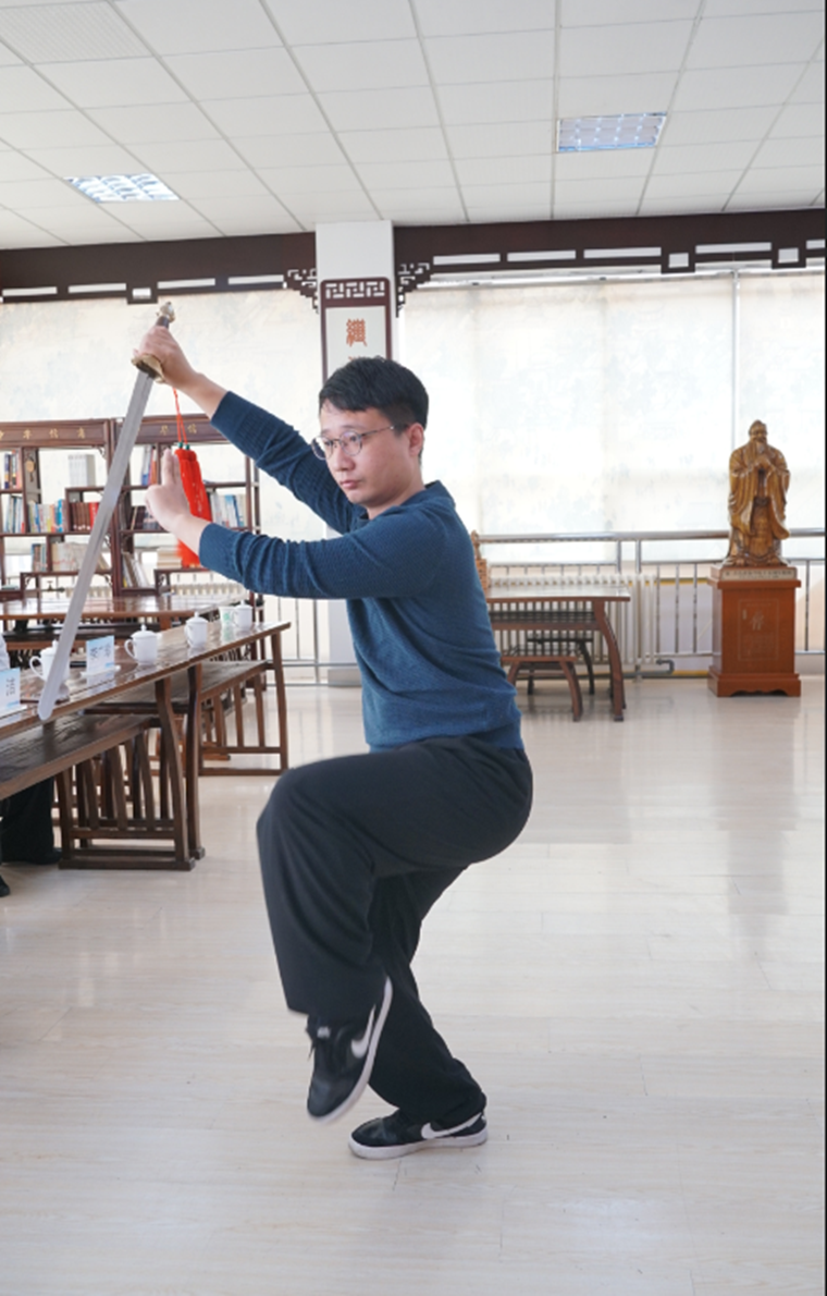在展演环节,李广珍高徒张贺昭带来舒展优美、身法中正、刚柔相济的杨氏太极拳表演,李广珍师傅亲自演示了太极拳十三式,并对学生太极拳展示进行现场指导。在场师生不由自主地跟着李广珍众弟子一起学习简单易学而有效的健身功法八段锦和太极拳招式,共同体验传统太极拳的独特奥妙。