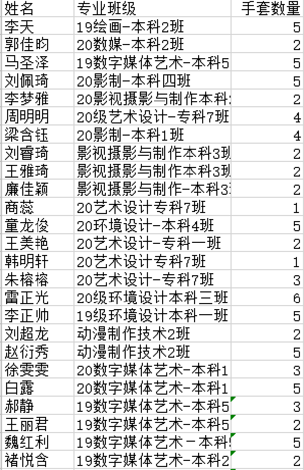 活动中志愿者们向一直以来辛勤劳动、默默奉献的安保人员和保洁人员致以最诚挚的问候和崇高的敬意。志愿者一张张充满阳光朝气的脸庞,那一句句真挚的问候,恰似冬日里的一首温暖的曲子,那是对辛勤劳动工作者的赞扬。这是此次艺术学院捐赠用品人员名单,让我们一起向同学们学习,向他们表示崇高的敬意。
