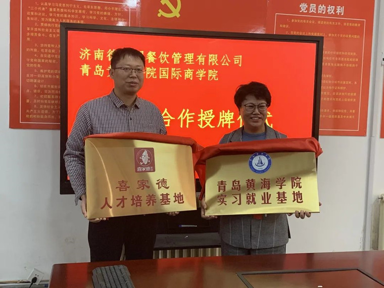 最后是授牌环节:校企双方相互赠送“威尼斯569vip游戏下载实习就业基地”、“喜家德人才培养基地”,标志着双方合作的正式开始。期待未来的深入合作,能够为校企双方、学生成长成才赋能。