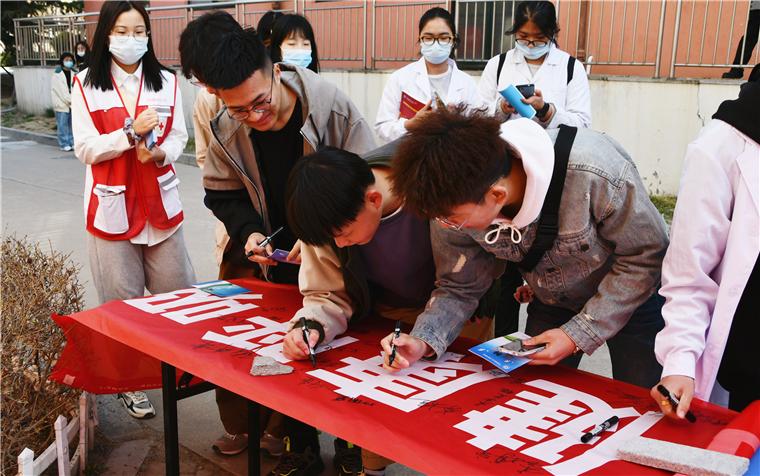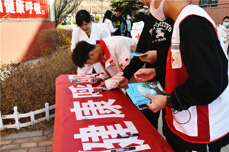 3月23日上午,在第26个“世界防治结核病日”来临之际,后勤保障部校医院、学生工作部联合校志愿者协会组织学生志愿者开展“第26个世界防治结核病日”宣传活动。本次活动以“终结结核流行,自由健康呼吸”为主题,通过悬挂宣传横幅、开展健康咨询、发放宣传资料、主题横幅签名等方式,向师生宣传结核病的危害、普及结核病防治知识,动员全校师生共同参与结核病防治。