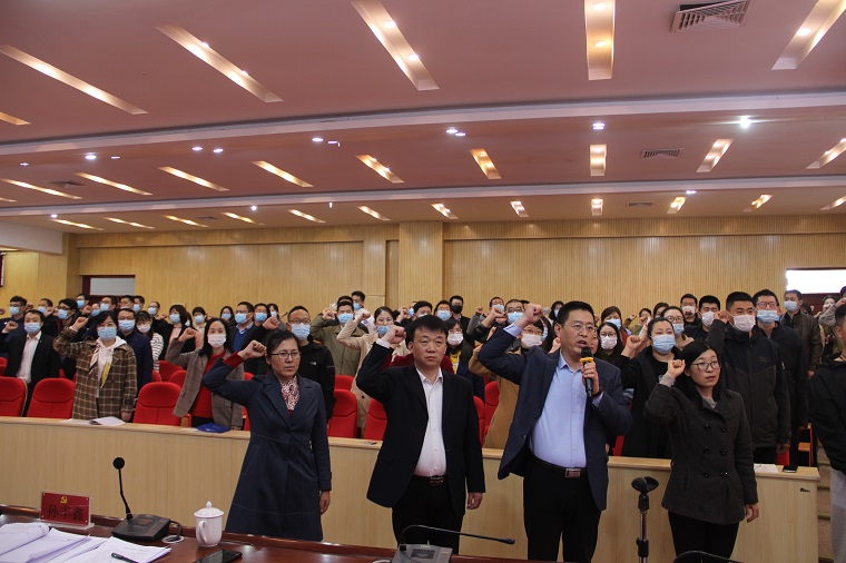 院长刘纪新领誓,全体教职工集体宣誓,表达争做“有理想信念、有道德情操、有扎实学识、有仁爱之心”的“四有”好教师的信心和决心。为强化“三全育人”,提升师德师风建设质量,学院与全体教职工签订《师德师风 “二十不准”责任书》,刘院长号召大家担当起立德树人的职责任务,戮力同心,不忘初心,下定决心,做师德楷模、师风榜样!