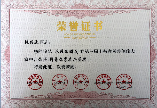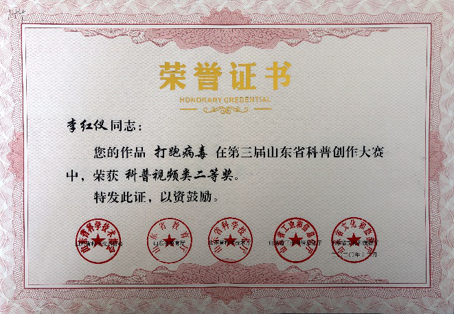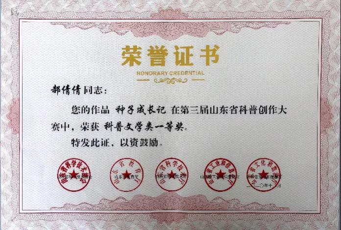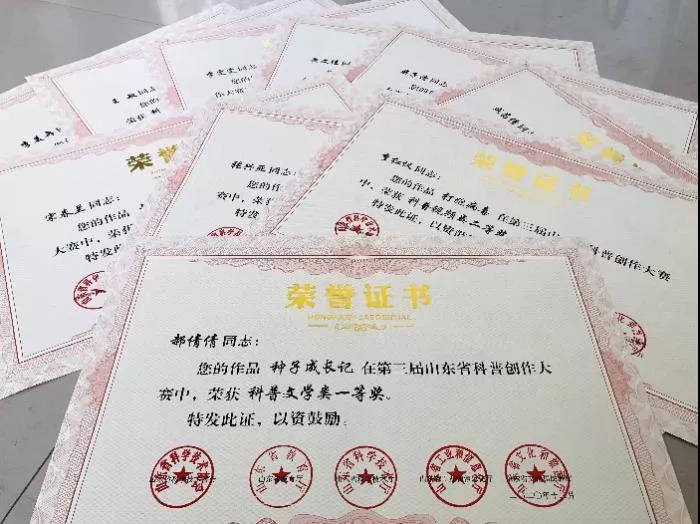 第三届山东省科普创作大赛证书到啦!我院学生郝倩倩、李红仪、张兴亚等10人分别获得一、二、三等奖。
