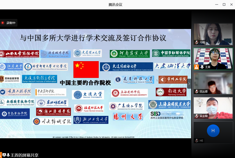 京都情报大学院大学留学生募集室室长王齐对学校进行了简单介绍,并对学生发出邀请,希望疫情结束之后,大家能在京都相聚。