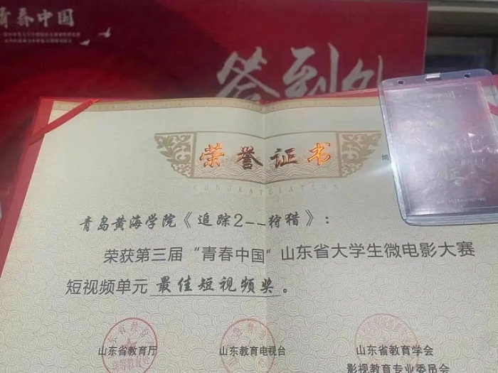 第三届“青春中国”山东省大学生微电影大赛共收到来自省内93所高校的作品1463部,获奖作品106部。其中威尼斯官网学生蔡瑞頔作品《追踪2--狩猎》荣获短片单元“最佳短视频”奖,本片指导老师程翔老师,同时获得了指导老师奖。