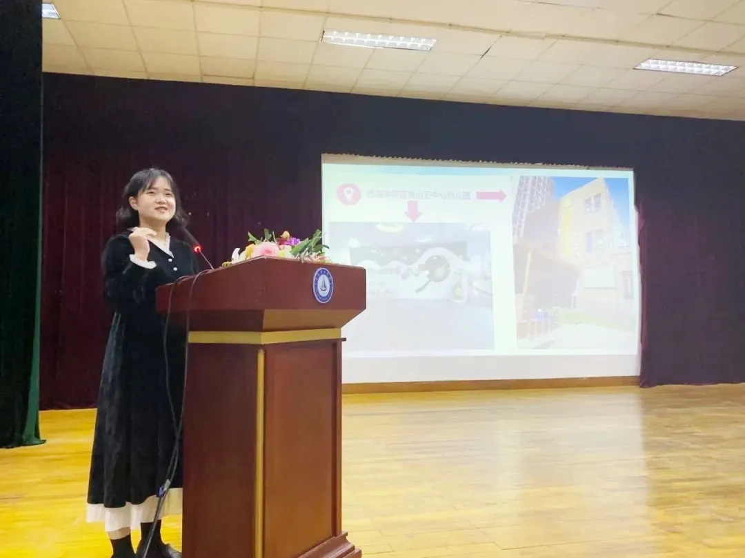 分享大会中,参赛的同学们依次上台,结合自己精心准备的PPT,分享自己有趣且充实的见习经历与收获,如每个幼儿园都有着不同的特色,在红黄蓝幼儿园里,红色代表小班,黄色代表中班,蓝色代表大班;同学们结合自身经历分享了自己在幼儿园遇到的难题,如幼儿园中怎样与特殊小朋友相处,怎样把握课堂节奏,怎样处理小朋友爱告状的情况等;她们还分享了自己见习两个周的感想,比如有同学认识到应该与幼儿建立信任,让幼儿感受到爱和尊重,通过两个周的见习学到了书本上没有的知识,学会了如何处理好与家长和孩子的关系,收获了过硬的专业知识和技能,感受到做幼儿老师的辛苦,体验到与孩子相处的快乐等;她们还给予了20级学弟学妹一些见习建议,如在工作中一定要有爱心、耐心以及细心,把小朋友的安全放在首位,要与教师以及保育员搞好关系等。每位参赛选手分享后,评委老师都给出了专业的评价,指出了其中的优点与不足。