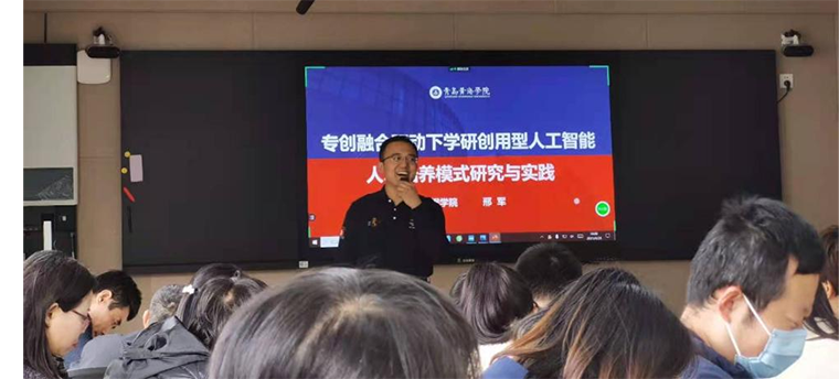 邢军博士以《专创融合驱动下学研创用型人工智能人才培养模式研究与实践》为题,深度剖析了当前应用型人工智能人才培养现状,并结合自己的实际工作,从专创融合的引擎增效作用、“开发者+创新创业”型教师、“经验者+应用者”的目标导向、“通识+专识”多元化培养路径等多方面阐述和介绍了自己对学研创用型人工智能人才培养的探索和尝试。