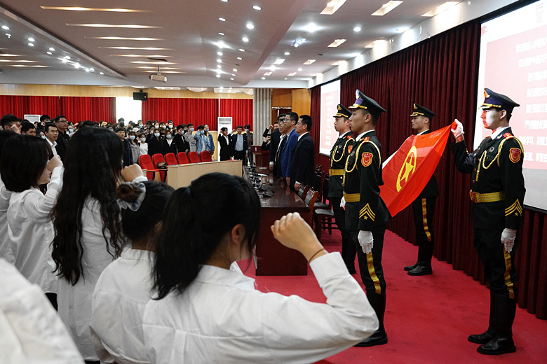 “我志愿加入中国共产主义青年团,坚决拥护中国共产党的领导,遵守团的章程,执行团的决议…”,会上,老团员带领新团员重温了入团誓词,宣誓铿锵有力,慷慨激昂,仿佛又让在场的全体共青团员回到入团时那激动难忘的时刻,让为共产主义事业奋斗的信仰再一次得到了升华;校领导也为全体团员送上了“五四寄语”,告诫年轻的团员牢记誓言,勇敢追梦,不负韶华,用实际行动,践行自己的誓言!