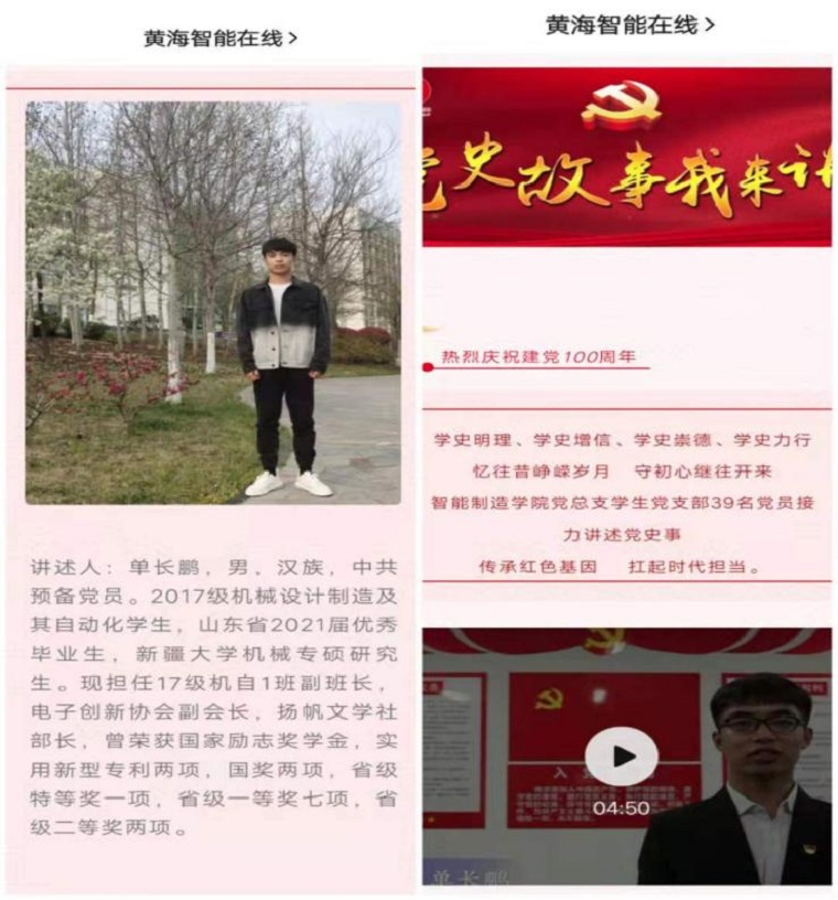 此次活动从5月23日正式启动,到6月30日结束。从5月24日起,学院将通过官方微信公众号“黄海智能在线”每天推送一期“党史故事我来讲”微视频。