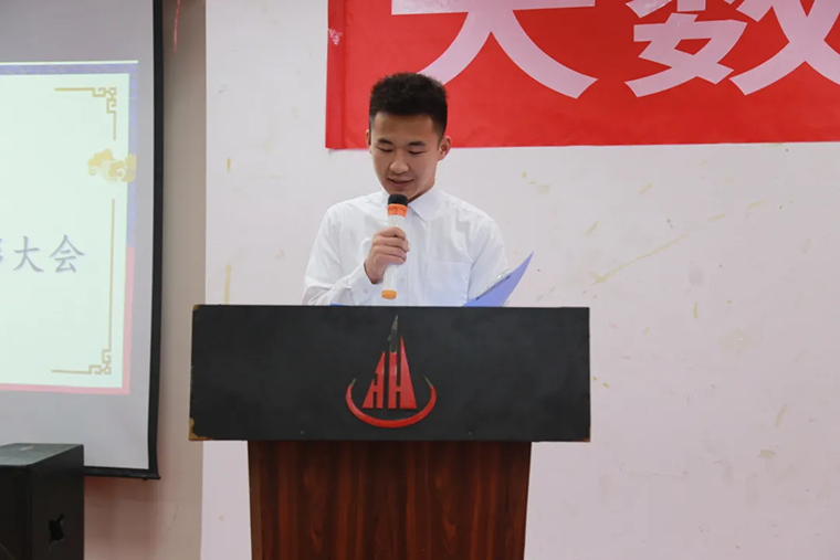 获奖学生依次上台进行领奖,石长清作为学生代表进行发言,强调大学生对于传统知识掌握的重要性,同时讲解学院校训“知行合一”,即认识事物的道理与在现实中运用此道理,是密不可分的。