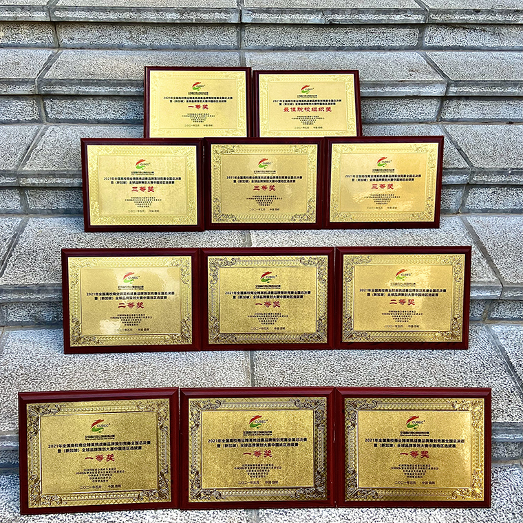 由张童、郭岩老师指导的Better品牌策划工作室(张雨琪、高飞、刘金星、孙蜜、周子仪)、齐晓明老师指导的听雨阁品牌策划工作室(刘星海、王杰、陈冠博)、王佳璇、王式晔老师指导的铭达品牌策划工作室(惠怡龙、王晨、李鹏程、王家琪、王胜杰)、齐伟伟、陈入画老师指导的乐福玻璃制品品牌策划工作室(曹文屹、李鑫垚、时玉珍、王千蕊、陈可欣)荣获全国一等奖。
