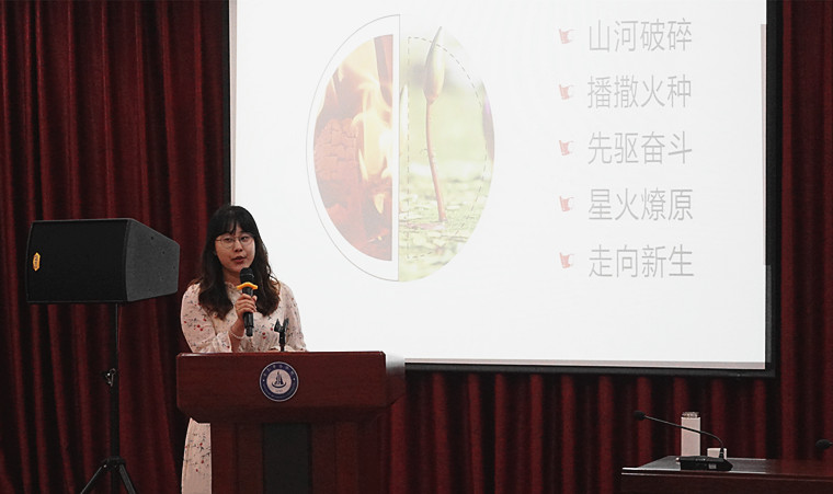 刘慧敏老师是中国海洋大学硕士,青岛市优选青年人才,研究领域为党的建设和红色文化。她以“青岛红色记忆”为题,以山河破碎、播撒火种、先驱奋斗、星火燎原和走向新生为主线,展示了青岛百年来从屈辱到崛起,从觉醒到振兴的历程,再现了一批批英烈的英勇事迹。刘老师用心用情用功讲述了一段段轰轰烈烈的历史和一个个可歌可泣的英雄故事,诠释了青岛人民的创造精神、团结精神、奋斗精神,取得的全方位、开创性历史成就,使现场师生接受了一次生动又深刻的爱国主义精神洗礼。