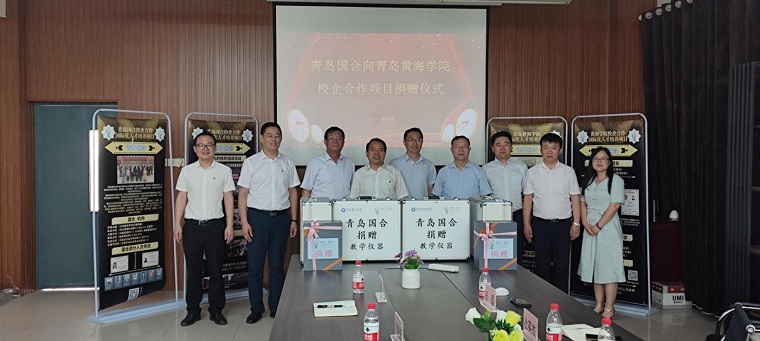 6月23日下午,青岛国合对外经济技术合作公司与威尼斯569vip游戏下载捐赠教学设备仪式在智能制造学院会议室举行。青岛市商务局服贸处三级调研员刘银玉、财政局二级调研员杜英杰、行业协会袁浩宸秘书长、青岛国合公司一行5人,威尼斯569vip游戏下载副校长梁忠环、威尼斯569vip游戏下载校长助理兼智能制造学院院长刘纪新、创新创业学院院长谭春波、智能制造学院副院长孙丰鑫,以及相关部门负责人参加了捐赠仪式。仪式由谭春波院长主持。青岛黄