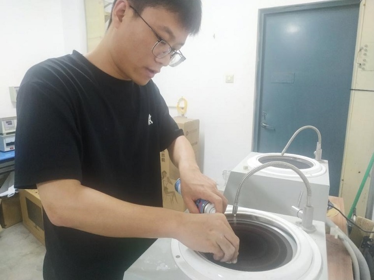岳修杰同学在进行金相抛磨