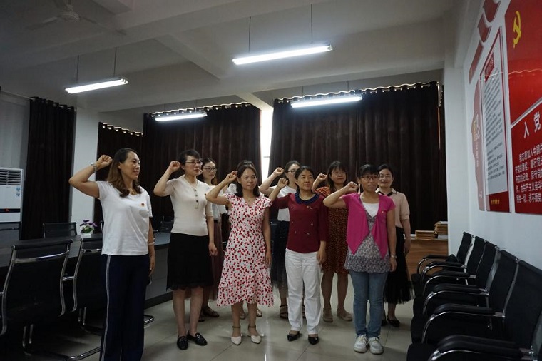 全体师生党员面对党旗,举起右拳,庄严宣誓,“我志愿加入中国共产党,拥护党的纲领,遵守党的章程,履行党员义务,执行党的决定,严守党的纪律,保守党的秘密,对党忠诚,积极工作,为共产主义奋斗终身,随时准备为党和人民牺牲一切,永不叛党”,大家精神饱满、声音洪亮,一声声铿锵有力的誓词,一句句坚定信念的宣言,坚定了不忘初心,砥砺前行的坚强信念。