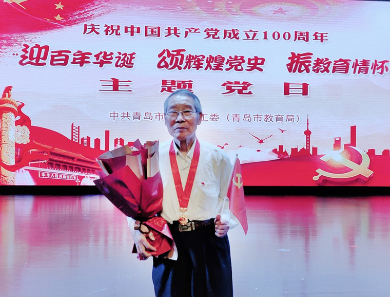 手握“光荣在党50年”纪念章,83岁的焦继瑞难掩激动和喜悦,他说:“感谢党中央对老党员的关怀,使我等垂暮之年获此殊荣。感谢青岛市委教育工委在隆重的‘主题党日’集会上颁发纪念章,使我受到了‘迎百年华诞,颂辉煌党史,振教育情怀’的洗礼。感谢黄海学院领导关心支持,同志们的友好相助。20余年来欣乘黄海之舰,在搏风击雨中受到磨炼,在砥砺前行中增强体魄,在创新发展中体验快乐,在无私奉献中享受幸福。”