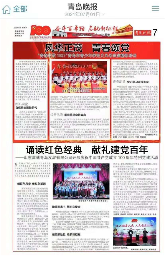 6月30日下午,由中共青岛市委宣传部、青岛市文明办,中共青岛市直机关工委、共青团青岛市委、青岛市教育局联合主办的“青春致敬1921”青岛市青少年学党史风采展演在青岛市电视台800平米演播厅举行。我院艺术教研室贾悦扬、罗单单老师排练的舞蹈《不忘初心》受邀参加展演。市委党史学习教育第七巡回指导组组长、青岛市发展和改革委员会二级巡视员于莲华,团市委副书记张宇、赵全超,市总工会副巡视员王爱民、市妇联副巡视员谭成英,以及市委宣传部、市直机关工委、市教育局等有关部门同志出席晚会。展演通过蓝睛、爱青岛等多个渠道直播,线上线下116万人次观看。