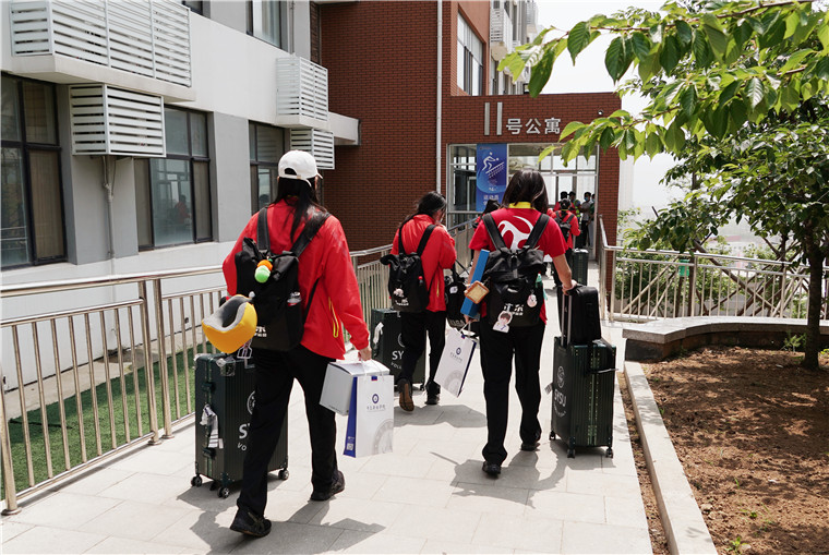 上午11点多,上海队率先抵达,随后是黑龙江队和广东队。江苏队、北京队、浙江队等参赛队也将在下午和晚上陆续抵达。根据疫情防控需要,运动员们经过健康码核验、体温测量后进入校园。在志愿者的带领下,各代表队顺利办理入住手续,领取了钥匙和相关证件。