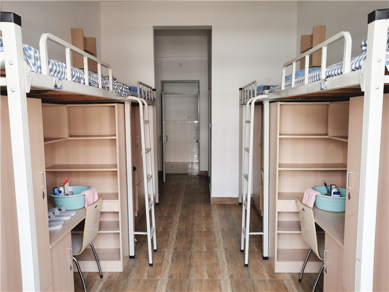 运动员公寓为四人间,配备有空调、独立卫浴等基础设施,学校还贴心的为运动员们准备了毛巾、沐浴露、拖鞋等比较齐全的日常用品。随处可见的欢迎标语、温馨提示,面带微笑的志愿者,无不散发着友好、热烈的气息。