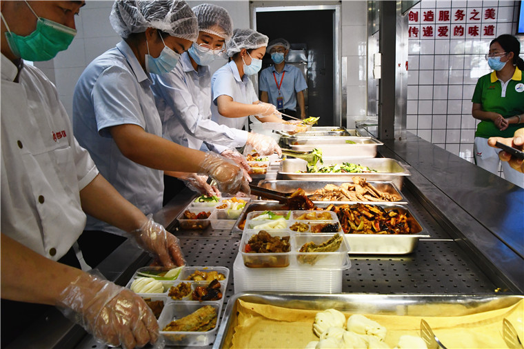 根据疫情防控要求,各代表队需在核酸检测结果出炉后才能到运动员餐厅用餐,为了保障运动员们都能吃到热腾腾的“第一餐”,志愿者在代表队入驻后的第一时间将丰盛又美味的饭菜送到宿舍。为了照顾到运动员的南北方的口味差异,餐厅每天至少准备50余种菜品以及主食,并且讲究美味与营养均衡。相信黄海学院贴心、周到的服务将给运动员们如家一般的愉快体验。