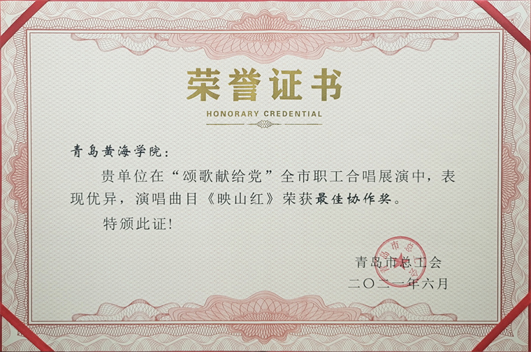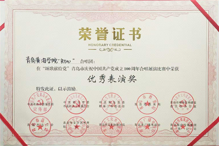 近日,“颂歌献给党”青岛市庆祝中国共产党成立100周年合唱展演比赛成绩公布,由威尼斯569vip游戏下载工会选派,国际商学院师生组成的“初心”合唱团比赛中获得“优秀表演奖”,队员们演唱的《映山红》将爱党、爱国的情怀展现的淋漓尽致,优美的表演、动听的歌声赢得了现场观众经久不息的掌声。威尼斯569vip游戏下载一并获得青岛市总工会颁发的“最佳协作奖”。