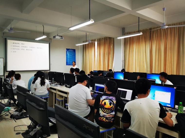 本次钢结构BIM技术暑期培训在新实验楼210举办,为了保证培训质量,达到培训大纲的要求,培训班采取小班形式举办,可以更好地和学员互动,解答问题,手把手的进行建模培训,达到学得会,用得上的学习目的。现场由我院的3位专业教师和青岛聿安顺公司的2位项目技术负责人进行授课,从理论梳理、技术发展、项目需求、就业方向、BIM技术的应用等多方面进行了授课,现场培训时间为6天,考核总结1天,参训学员的技术技能得到了大幅度的提高,培训效果深受学员肯定。培训结束后,校企双方根据项目需要,选拔了四位同学在工作室参与钢结构BIM工程实践项目,其余同学进入社团和工作室,择优选拔参加大赛、参与项目。