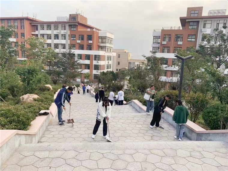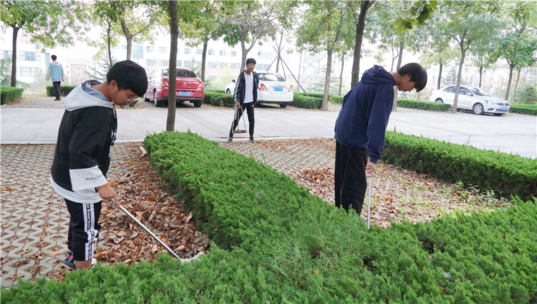 知新楼旁、六艺路上、孔子像前……校园里到处都是同学们辛勤劳动的身影,大家纷纷拿起扫把、铁铲,清除杂草、落叶,清理路面和路沿石下的积土和,捡拾绿化带内的垃圾和杂物,提升校园环境卫生水平。