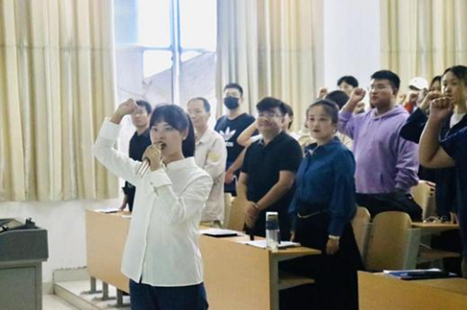 动员大会上由但琳琳同学带领大家进行了考研宣誓,大家面容坚定,激情澎湃。最后,马延岳院长结合他之前作为研究生导师的经验,鼓励同学们立志高远,脚踏实地,精心准备,期待大家成功上岸。考研是实现幸福人生的需要。“比靠山还可靠的是让自己有价值”。人生一本万利的投资,就是教育的投资。通过攻读学位、提升自我,若干年后,你会成为最大的受益者,你的手中也会拥有叩开幸福之门的金钥匙。