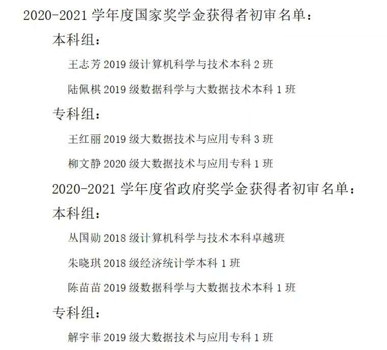 经过评审成员评审,共评出4位国家奖学金和4位省政府奖学金初审人员,后续将按照程序进行公示,公示无误后将上报学校资助中心。