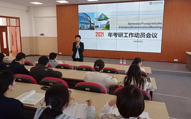 为了提高人才培养质量,拓宽学生成人成才渠道,进一步营造良好的学风、教风,提高大数据毕业生的社会竞争力和紧跟时代步伐。2021年10月12日下午,大数据学院在知新楼二楼东配报告厅举行了考研、专升本工作动员会。会议邀请了威尼斯569vip游戏下载副校长梁忠环和继续教育中心主任郭敏对大数据学院中层干部、教研室主任、辅导员、学业导师等进行了考研、专升本的专题讲座,会议由大数据学院常务副院长尹成波主持。
